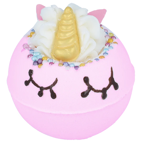 The Last Unicorn Blaster: A Bath Blaster thought to be nothing more than a myth, filled with a fruity floral perfumed fragrance and magical ylang ylang & jasmine essential oils as powers. Watch as she fizzes and dances around the tub, turning the water a pretty pastel pink and leaving a trail of her skin softening natural butters.